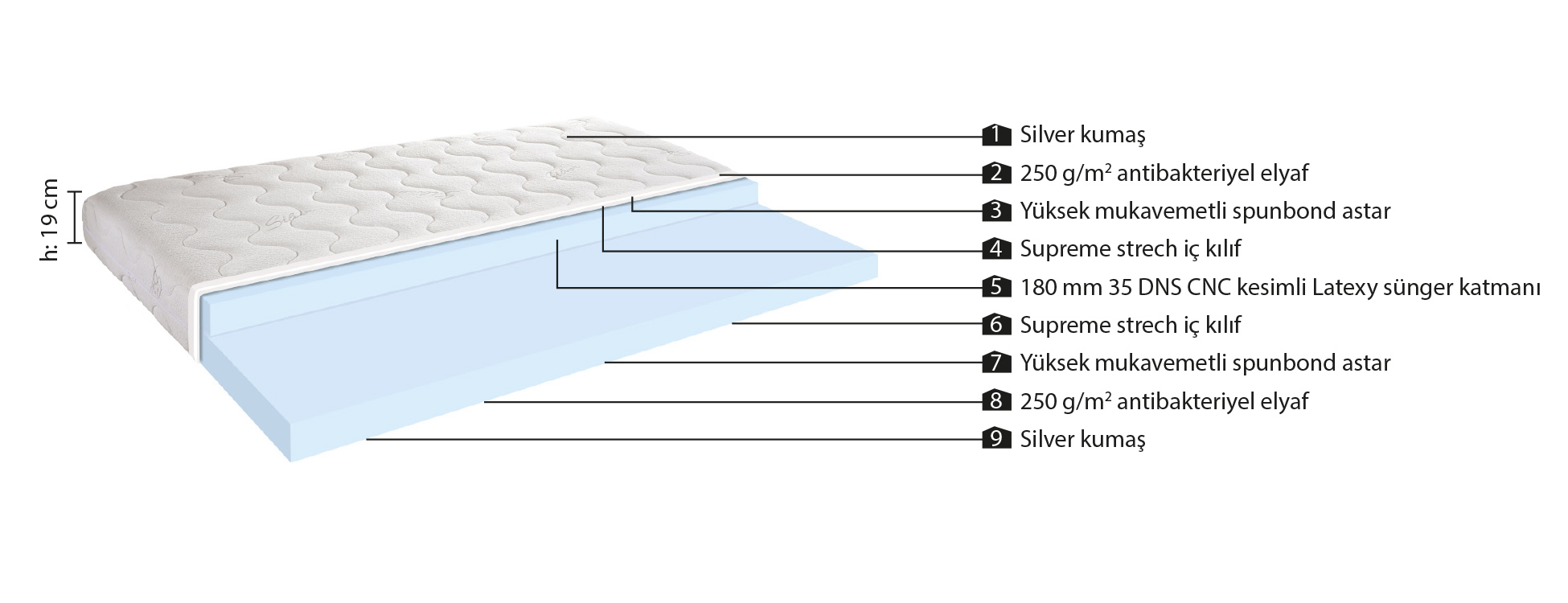 Doğanın insanlığa hediyesi olan, doğal Latex dokusunu hissettiren Latexy sünger teknolojisi, konforlu ve rahat uykularınız için Planet Mühendisleri tarafından geliştirildi.